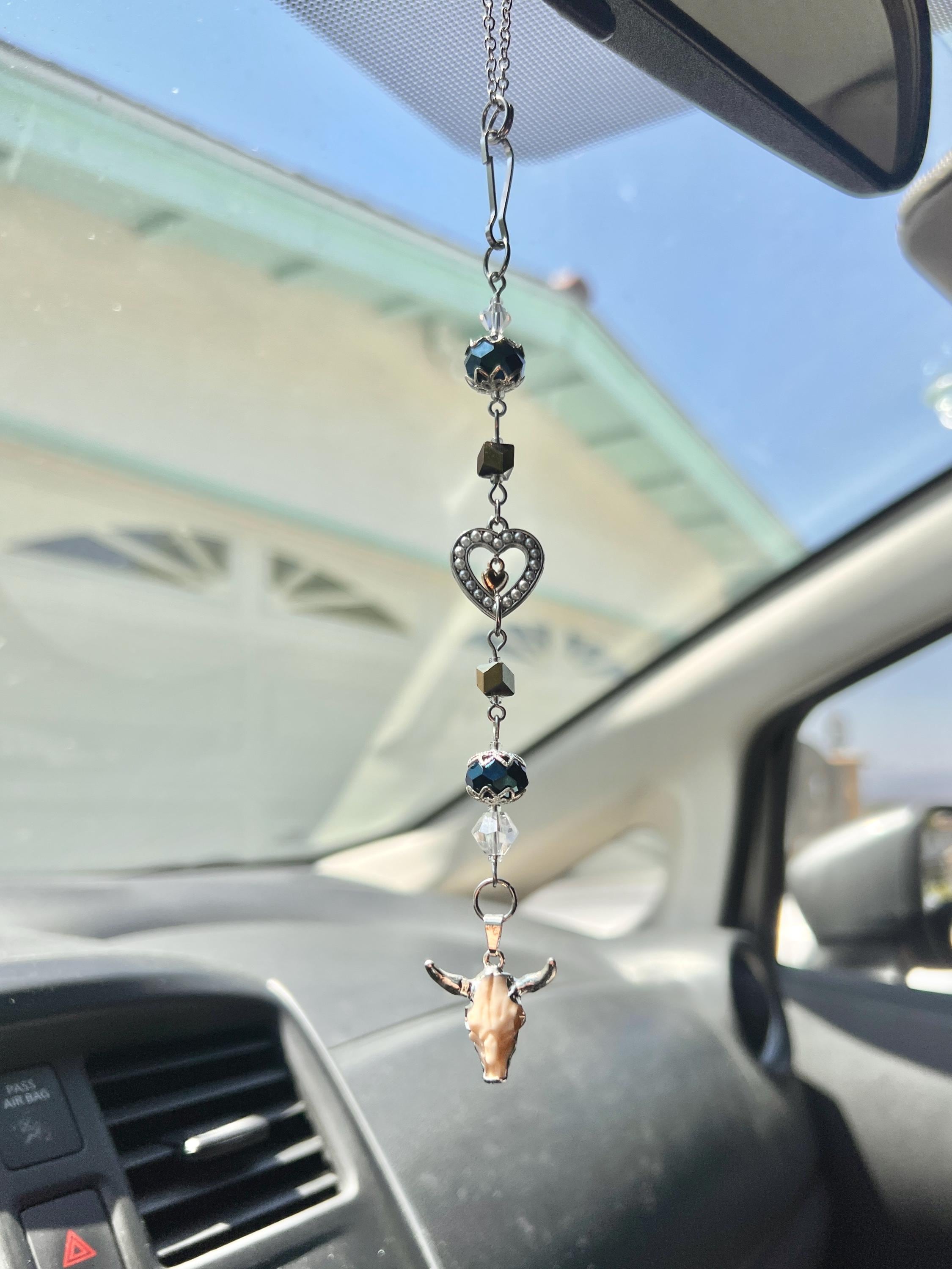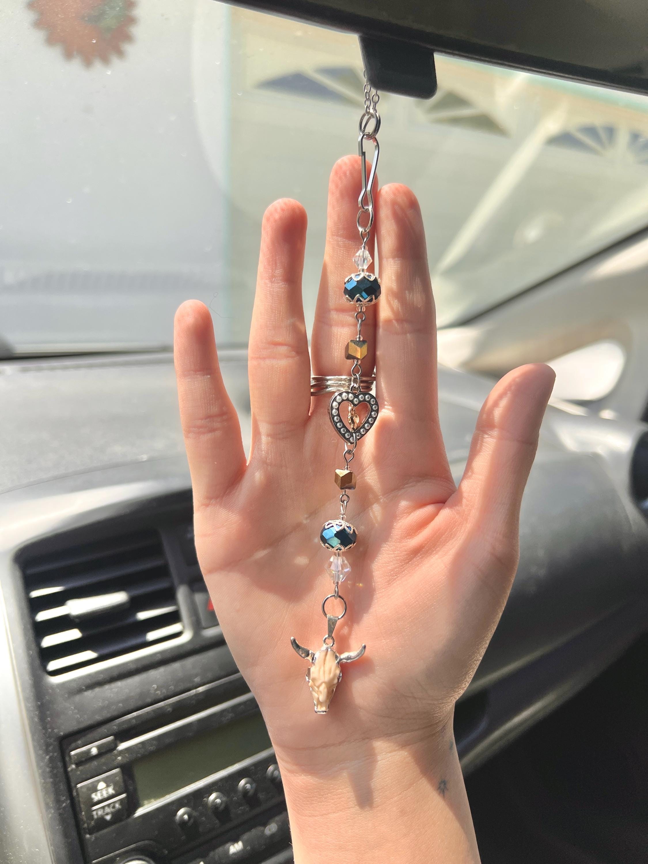 Bring a touch of western spirit to your ride with this handmade rearview mirror charm. Designed for cowgirls, rodeo lovers, and anyone who wants that perfect mix of rustic charm & bold edge.